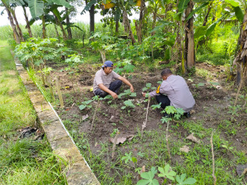 Bhabinkamtibmas Grogol Tinjau Lahan Ketahanan Pangan